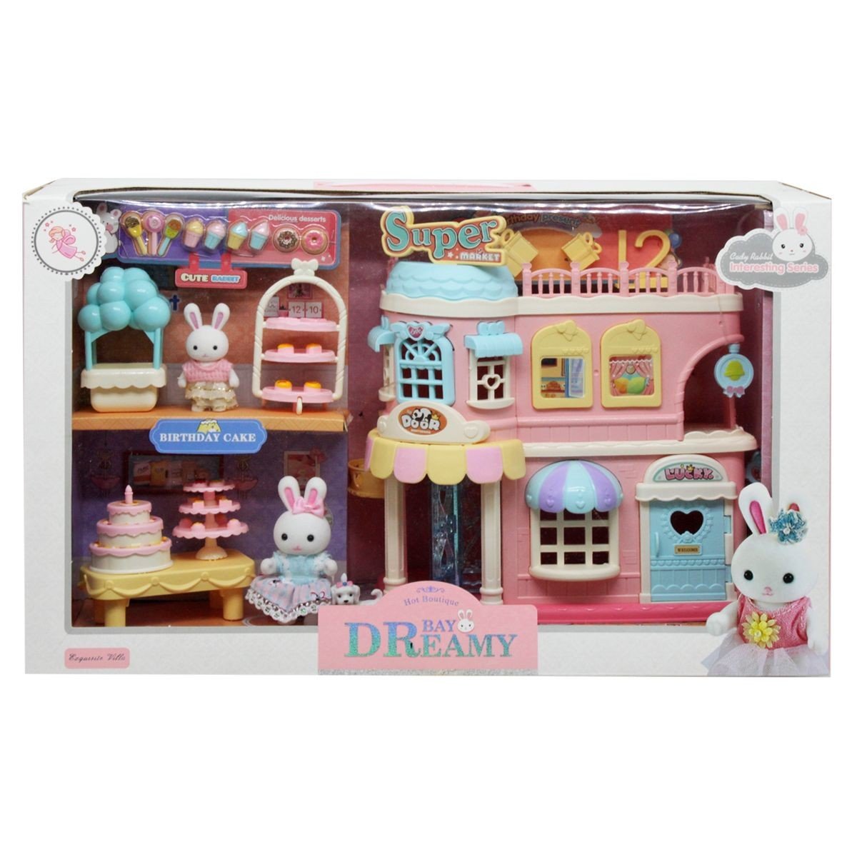 Опис Будиночок з зайцями (2 поверхи, фігурки, аксесуари, прилавок з тістечками, в коробці)