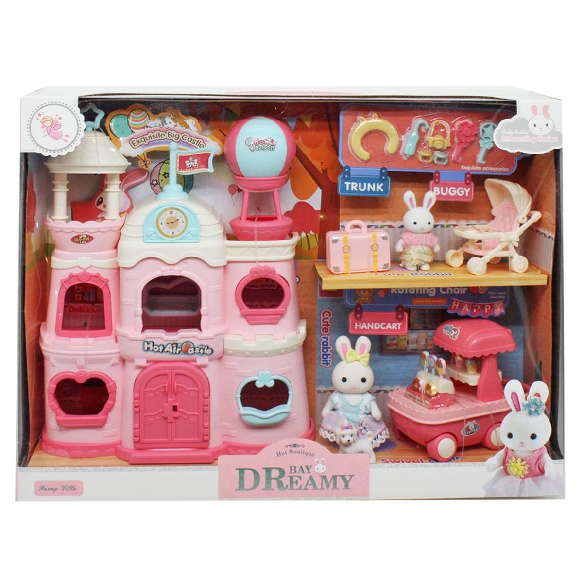 Опис Будиночок з зайцями (3 поверхи, замок, гойдалка, фігурки, аксесуари, прилавок з морозивом, в коробці