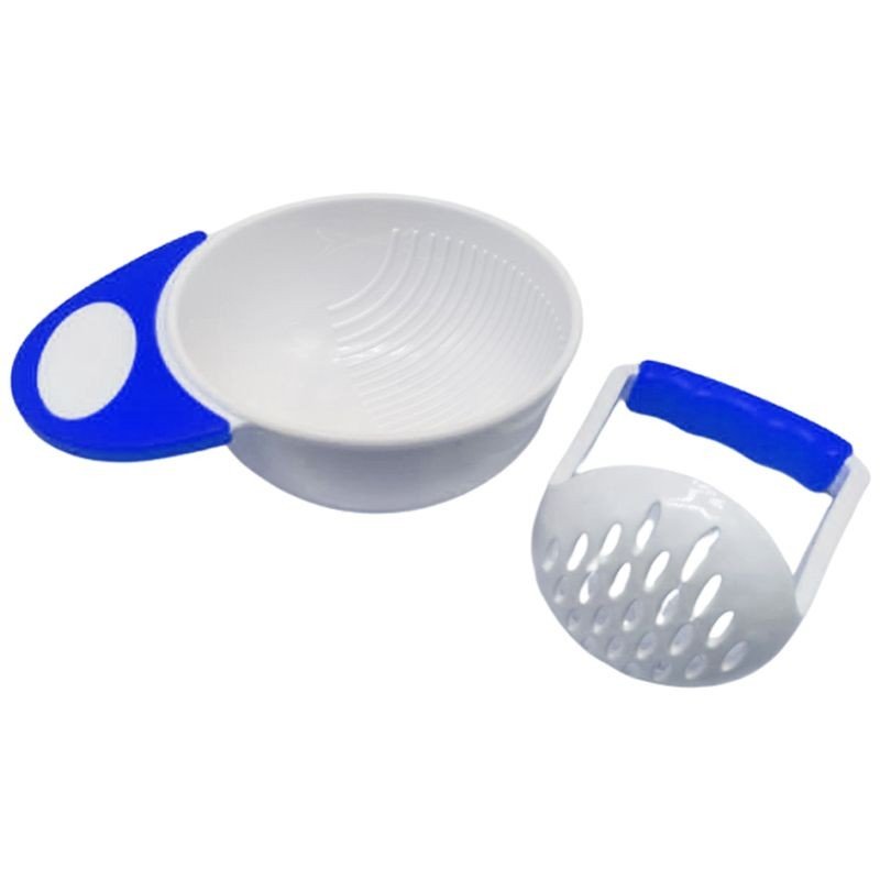 Зручний кухонний аксесуар для батьків, які самостійно роблять пюре для малечі. Миска діаметром 15 см, має ребристу поверхню, що допомагає ефективніше подрібнювати їжу толкушкою, яка також є в наборі. Тарілка легка та компактна, не займає багато місця.