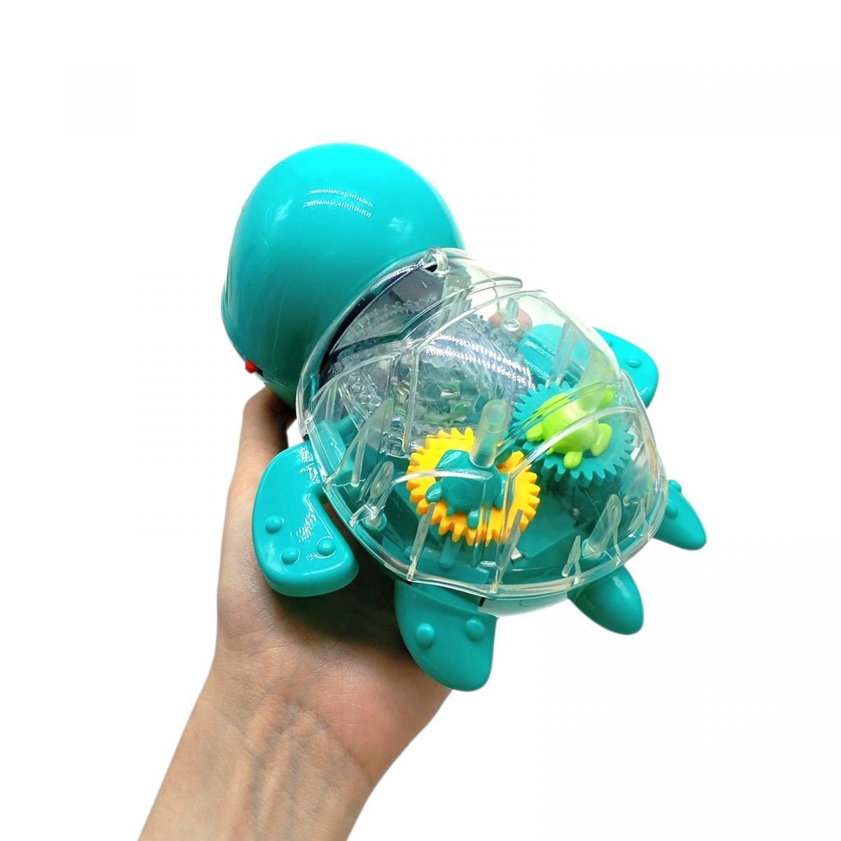 Це звичайна черепаха — повільна і тиха. А музична черепашка жваво рухається, яскраво підсвічується та ще й відтворює гучну мелодію! Під прозорим панциром обертаються кольорові шестерні з дрібними черепашками. Тваринка рухається вперед та назад, обертається і тріпоче своїми лапками й ластами. В серії присутні різноманітні забарвлення черепашок.