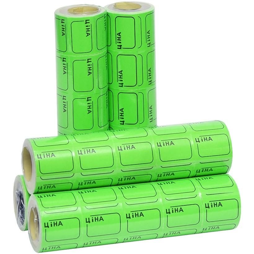 Опис Цінник маленький 3,0х2,0 см "Ціна" з рамкою зелений, 100 шт