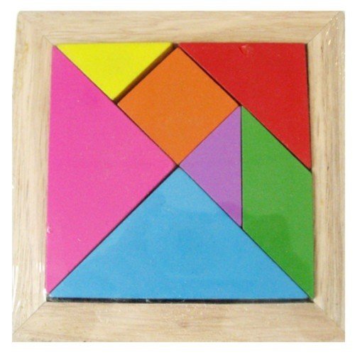 Дерев'яна головоломка. Складається з 7-ми різнокольорових фігур і основи у формі квадрата. Завдання дитини: помістити всі фігурки в основу так, щоб вийшов квадрат. Гра розвиває логіку, увагу і мислення.