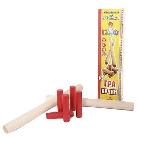 "Бучки" - спортивна гра за принципом "Городков". Правила гри: вибрати майданчик, накреслити квадрат 60 х 80 см, провести лінії на відстані 6 і 3 метри від квадрата. Перша фігура вибивається "Бучко" з шести метрів. Наступні - з 3-х. Гра призначена для 2-х команд. Необхідно вибивати "Бучки" за межі квадрата. Гра виготовлена з екологічних матеріалів. У комплекті: дерев'яні бруски (5 шт.) довжина 8 см.діаметр 1 см., "Бучки" (2 шт.) довжина 30,5 см., діаметр 1,5 см., iнструкція.