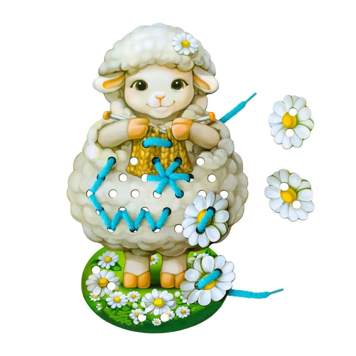 Розвиваюча іграшка із натурального дерева. Шнурівки розвивають дрібну моторику рук, формують навички шнурування, завʼязування шнурка в бант, просторове орієнтування, координацію. Розмір іграшки 32 х 18 см. У комплекті є основа у вигляді милої овечки, шнурок та 4 деталі для шнурівки. Різні кольори в асортименті.