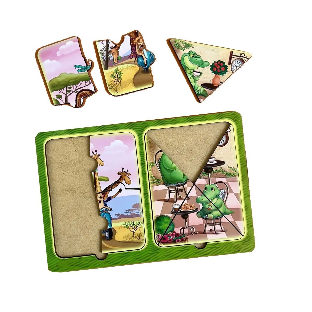 Опис Деревʼяні пазли в рамці "Жирафи та крокодили"