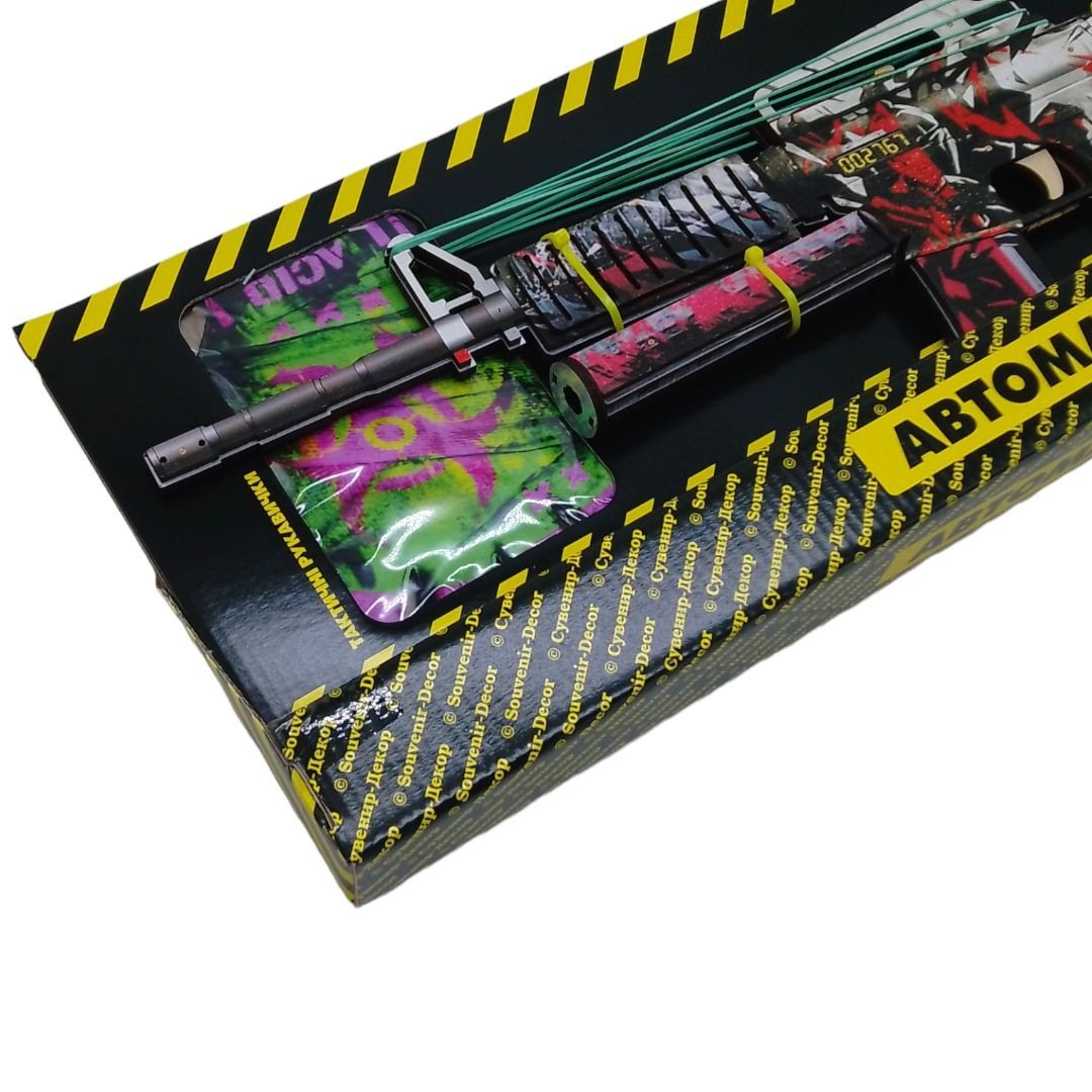 Бренд: Сувенир-Декор Упаковка: Коробка Колір: Різнобарв'я Вага з упаковкою: 460 г Габарити в упаковці: 22 x 59 x 5 см Країна виробник: Україна Матеріал: Дерево Комплектація: Автомат, рукавички, резинки, брелок и фішки