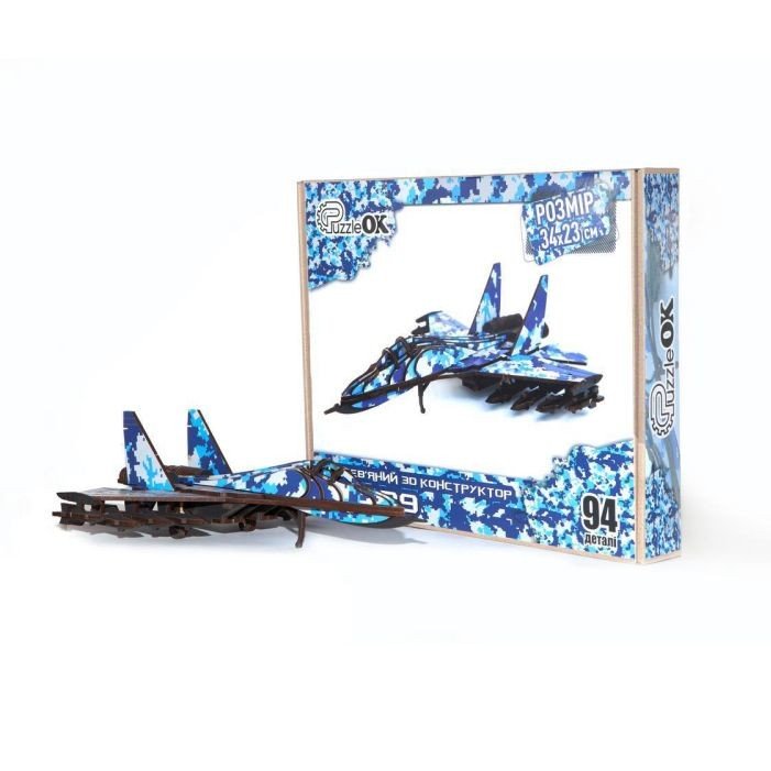 Дерев'яний 3D конструктор складається з 94-х деталей. Набір виконаний з екологічних та безпечних матеріалів. Складання конструкції порадує як дітей, так і дорослих. Розмір літака у зібраному вигляді: 34х23 см. Виготовлено в Україні.