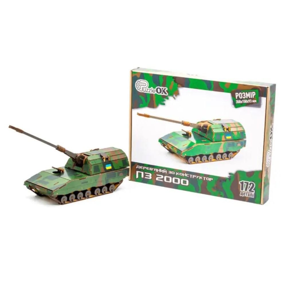 Дерев'яний 3D конструктор складається з 172-х деталей. Набір виконаний з екологічних та безпечних матеріалів. Складання конструкції порадує як дітей, так і дорослих. Розмір танку у зібраному вигляді: 35х15х9.3 см. Виготовлено в Україні.