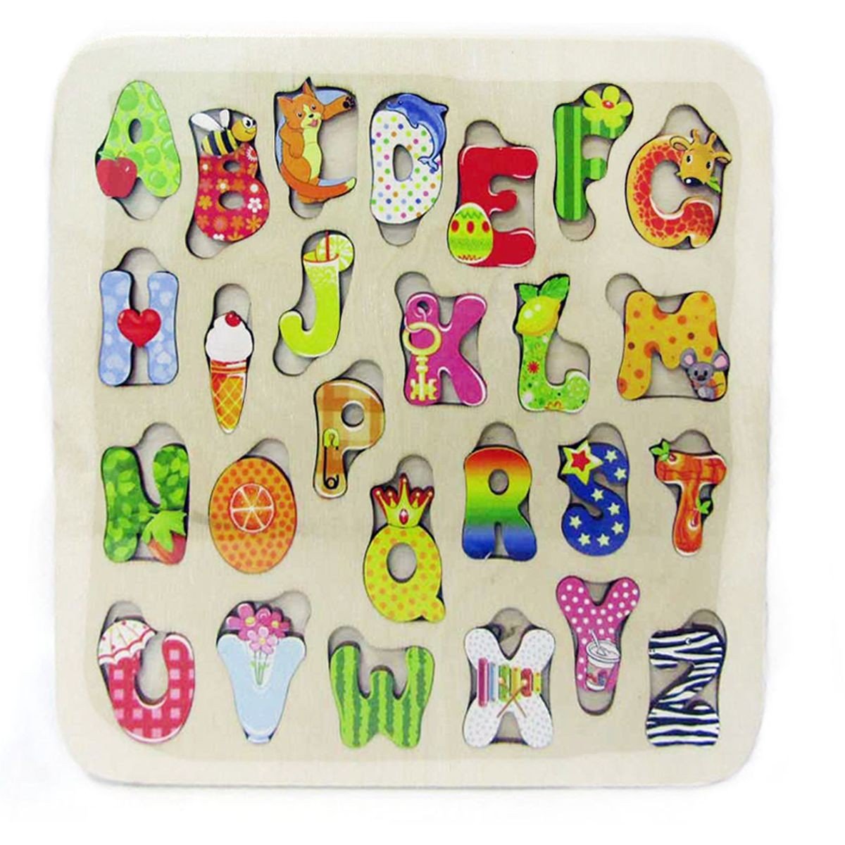 Дерев'яний пазл "Англійська абетка" з малюнками. Набір складається з дерев'яної рамки з вирізами і букв англійського алфавіту, що відповідають їм. Підходить для вивчення англійського алфавіту, кольорів та форм. Розвиває дрібну моторику, увагу, логічне мислення та пам'ять.