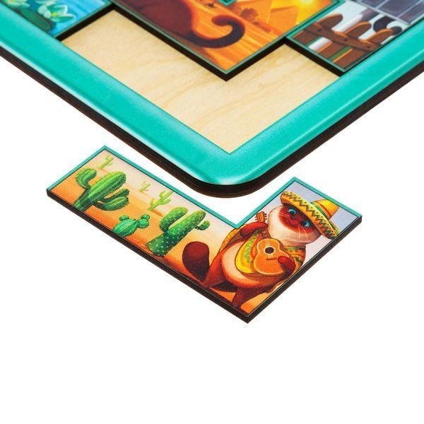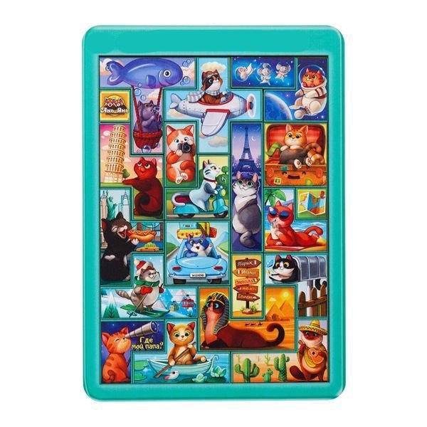 Потрібно розкласти тематичні фігурки так, щоб усі розташувалися на планшеті за прикладом (у наборі йде картинка-підказка) і можна буде побачити, де подорожують ці милі котики. Вивчайте країни світу та рахуйте котиків. Запропонуйте дитині придумати для усіх героїв цікаві імена. Розмір: 32х23 см.