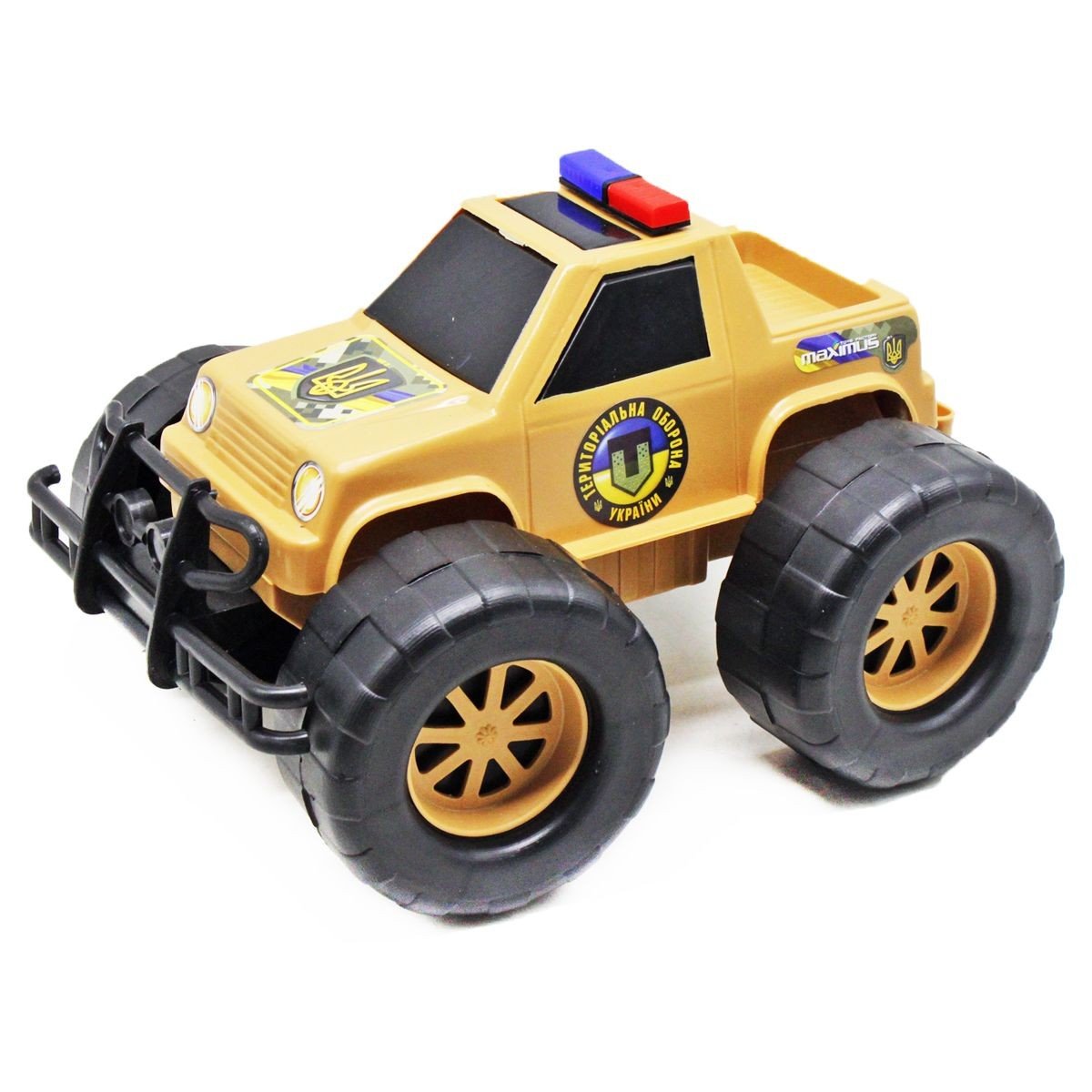Пластиковий джип "Територіальна оборона", прикрашений національною символікою України. Іграшка чудово підійде для гри як удома, так і на вулиці. Допомагає розвивати уяву та дрібну моторику рук. Діаметр коліс: 9 см. Розмір машинки 24х15х19 см. Для дітей віком від 3-х років.