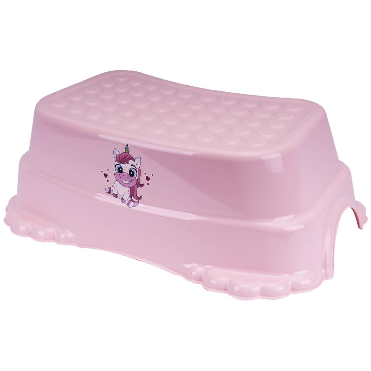 Дитяча підставка-сходинка. Допоможе малюкові самостійно користуватися ванною кімнатою або брати речі з поличок. На ніжках сходи спеціальне антиковзне покриття. Висота від підлоги 15 см. Розмір сходинки 43х26х15 см.