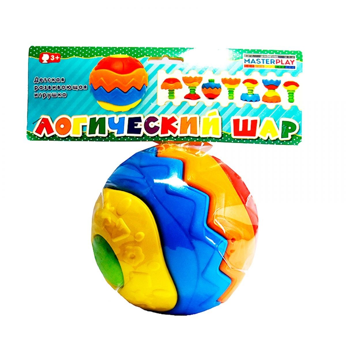 Дитяча розвиваюча іграшка "Логічний куля". Складається з 5 елементів: стрижня, на який низах інші 4 деталі. Нанизувати можна в різному порядку, тим самим змінюючи форму конструкції.