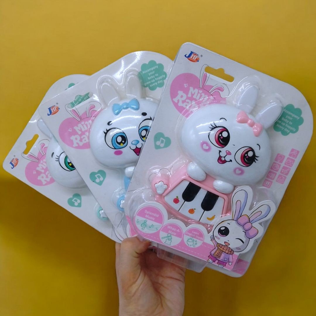 Музична іграшка-піаніно для малюків. Є 4 кнопки, які видають звуки різної тональності. Іграшка має мʼяке кольорове підсвічування, яке вмикається і вимикається при натисканні на ліву лапку. Кнопкою на правій лапці можна змінювати режими гри: вивчення англійських слів, звуки з мультфільмів і програвання різних мелодій. Працює від 2-х батарейок типу АА. Розмір: 15.5х10 см.