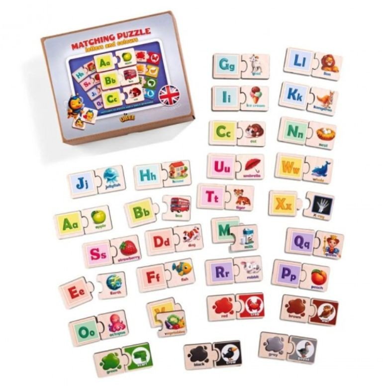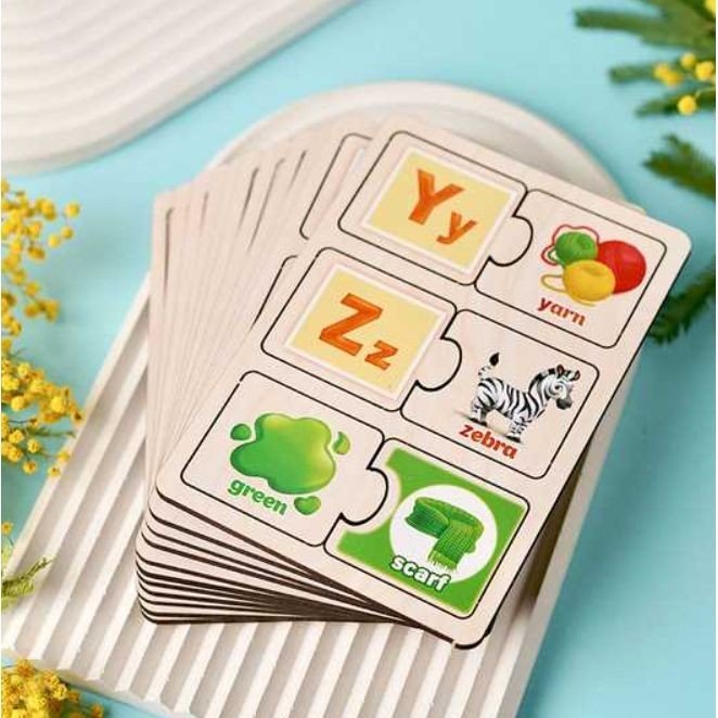 Набір розвиваючих міні-пазлів "Англійська Абетка". У наборі є 29 пари пазлів. На пазлах зображені літери англійського алфавіту та різноманітні предмети, з якими літери потрібно буде поєднати. Виконано з якісних та екологічно чистих матеріалів.