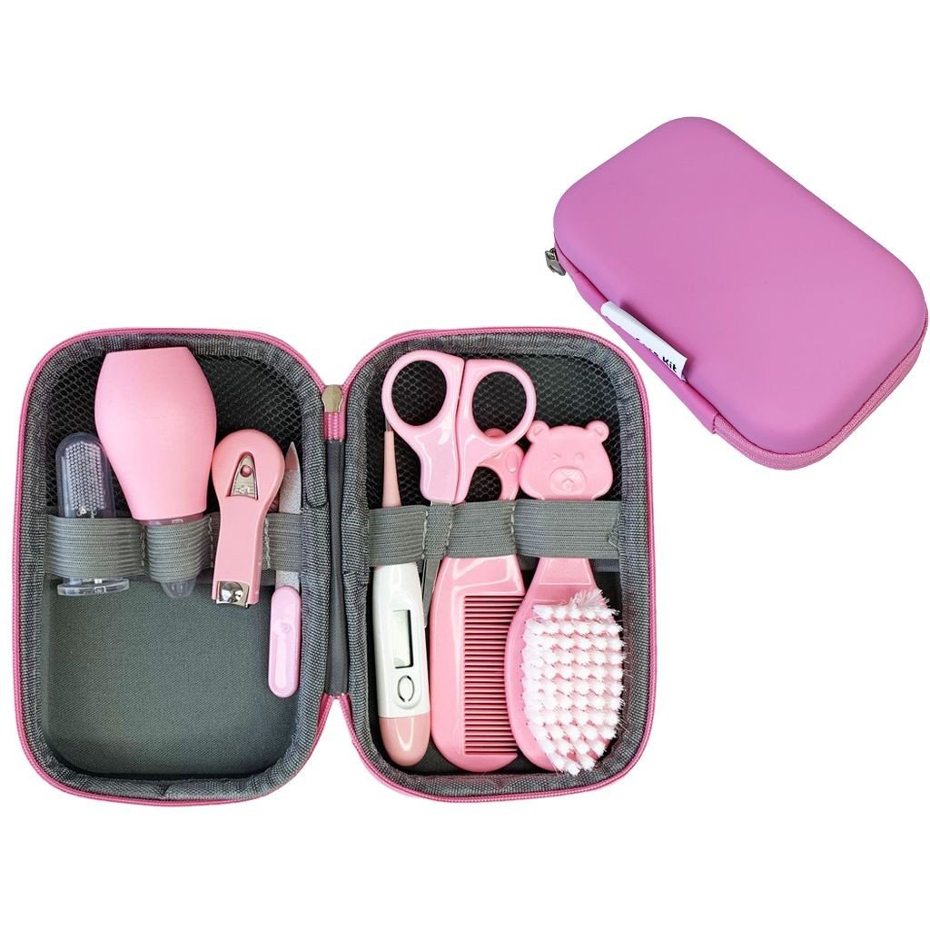 Дитячий гігієнічний набір у красивому мінімалістичному футлярі-органайзері. До комплекту входить: електронний термометр, манікюрні інструменти (ножиці, пилочка та кусачки), пластиковий гребінець, щітка з синтетичним ворсом, силіконова зубна щітка на пальчик, аспіратор механічний. Всі інструменти виконані в милому дизайні та являються абсолютно безпечними для малюка.