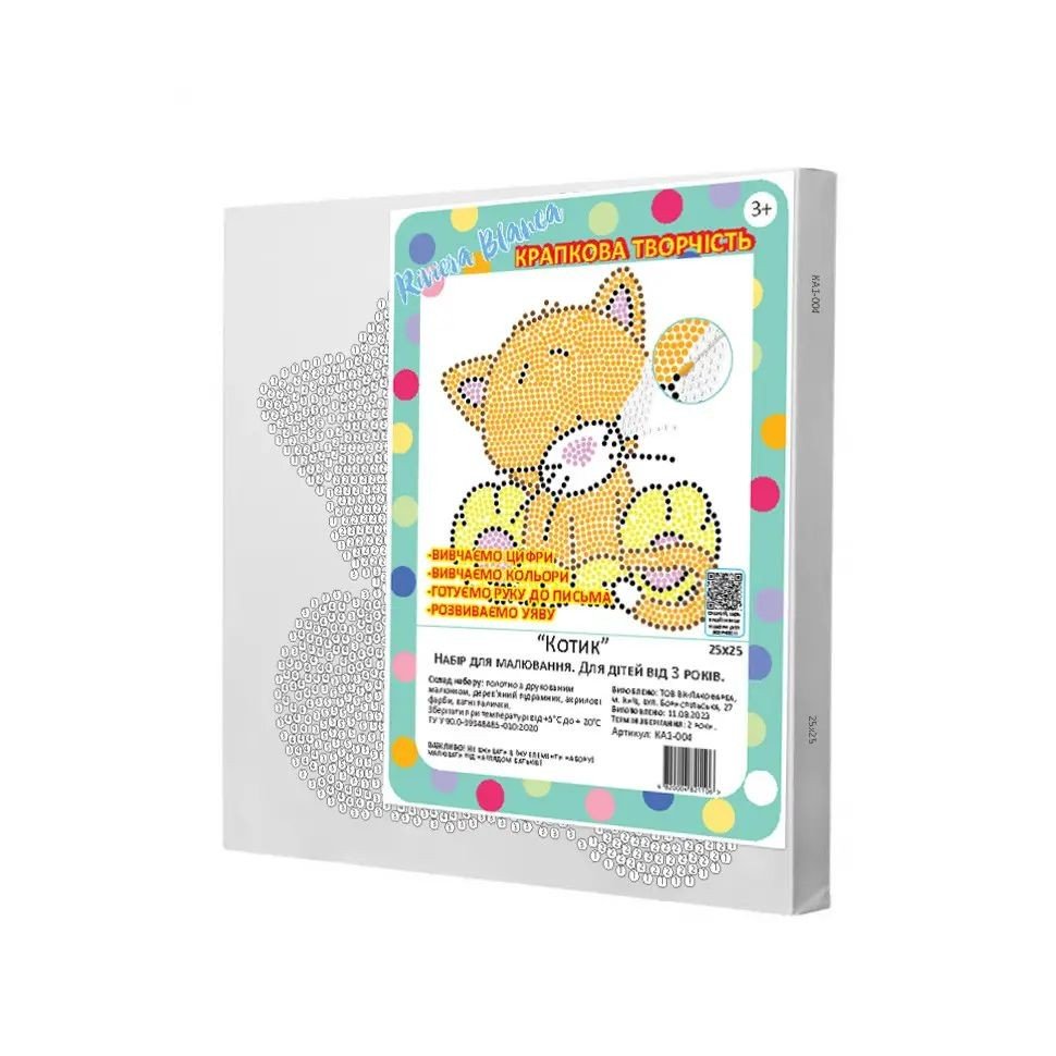 Опис Картина за номерами, дитяча "Котик" (25х25 см)