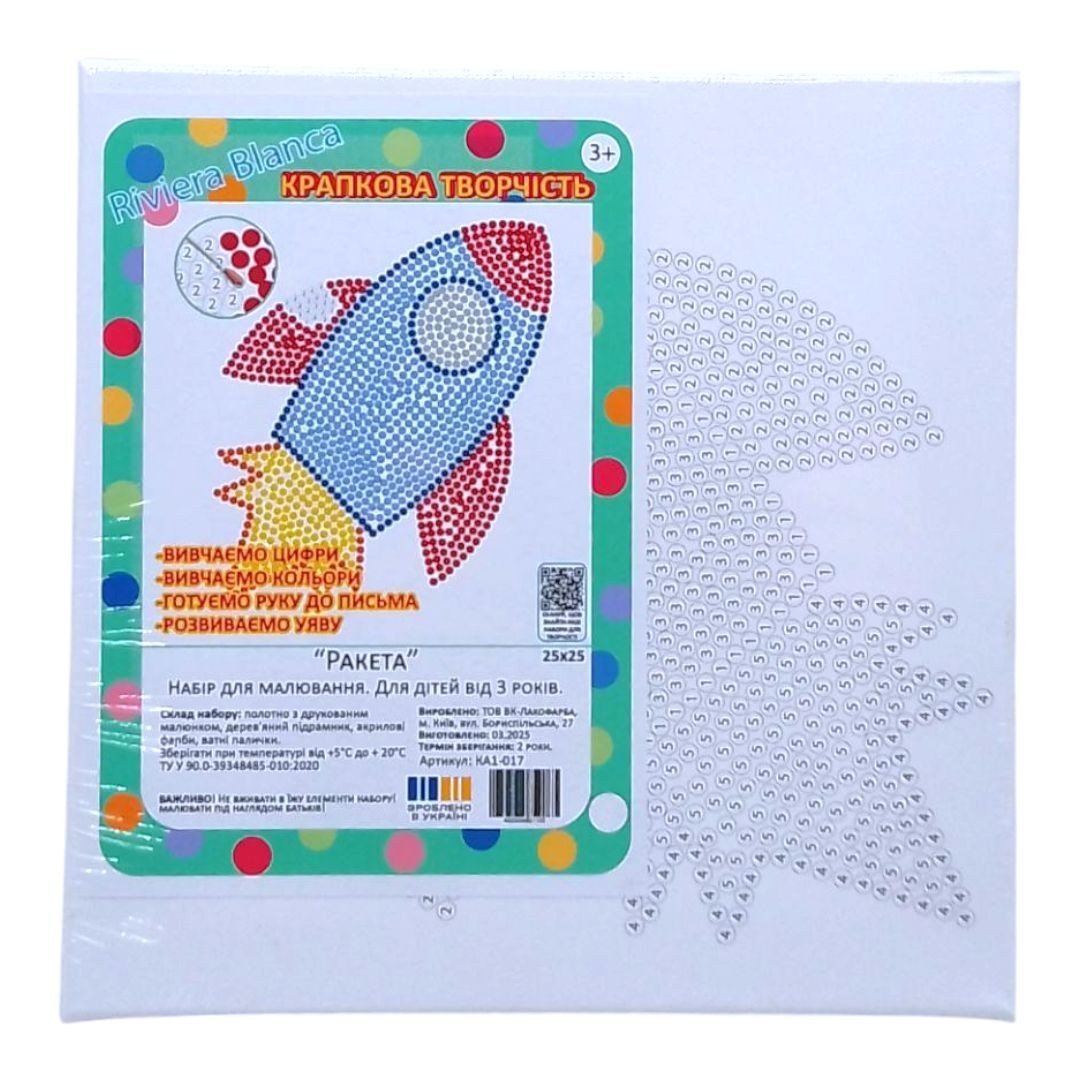 Опис Картина за номерами, з ватними паличками "Крапкова творчість. Ракета" (25х25 см)