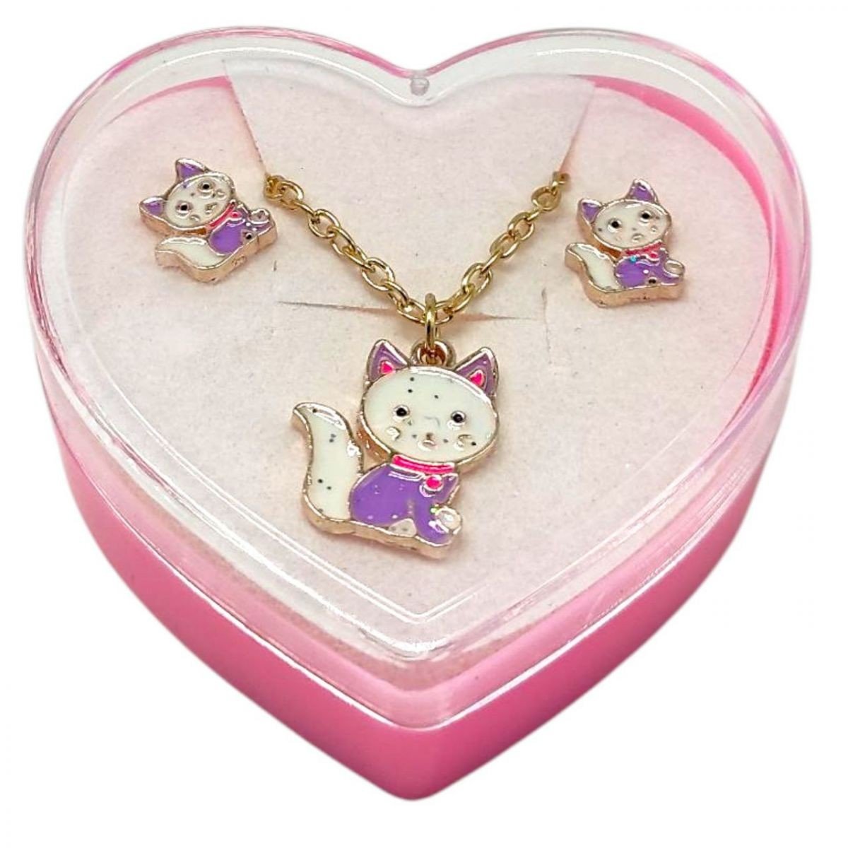 Опис Дитячий набір прикрас: кулон+сережки (З світло лавандовою кицею)