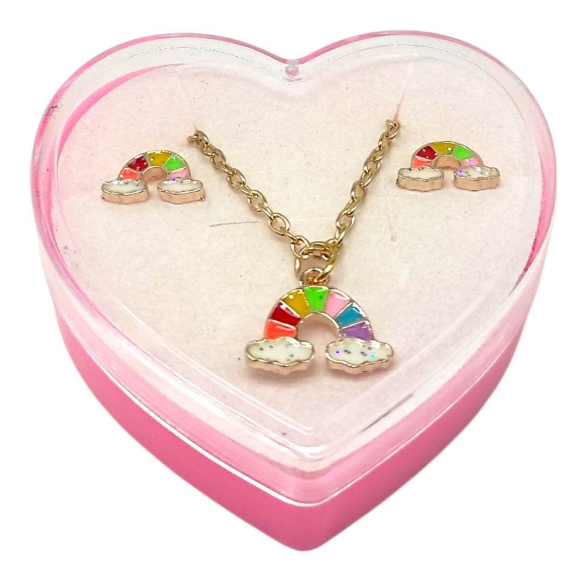 Опис Дитячий набір прикрас: кулон+сережки (З веселкою)