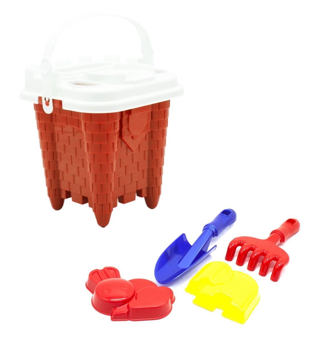 Бренд: Bamsic Упаковка: Сітка Колір: Червоний Вага з упаковкою: 240 г Габарити в упаковці: 20 x 19 x 26 см Країна виробник: Україна Матеріал: Пластик Комплектація: Відерце, грабельки, лопатка, ситечко і 2 пасочки