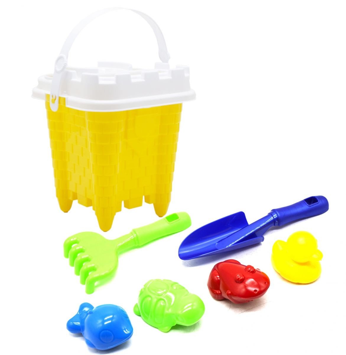 Бренд: Bamsic Упаковка: Сітка Колір: Жовтий Вага з упаковкою: 240 г Габарити в упаковці: 20 x 19 x 26 см Країна виробник: Україна Матеріал: Пластик Комплектація: Відерце, грабельки, лопатка, ситечко і 4 пасочки