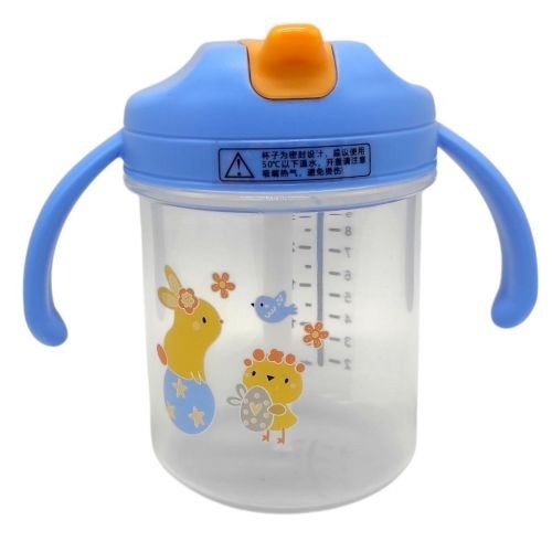 Опис Дитячий поїльник з трубочкою, 280 мл (ПРОЗОРИЙ, БЛАКИТНІ РУЧКИ)
