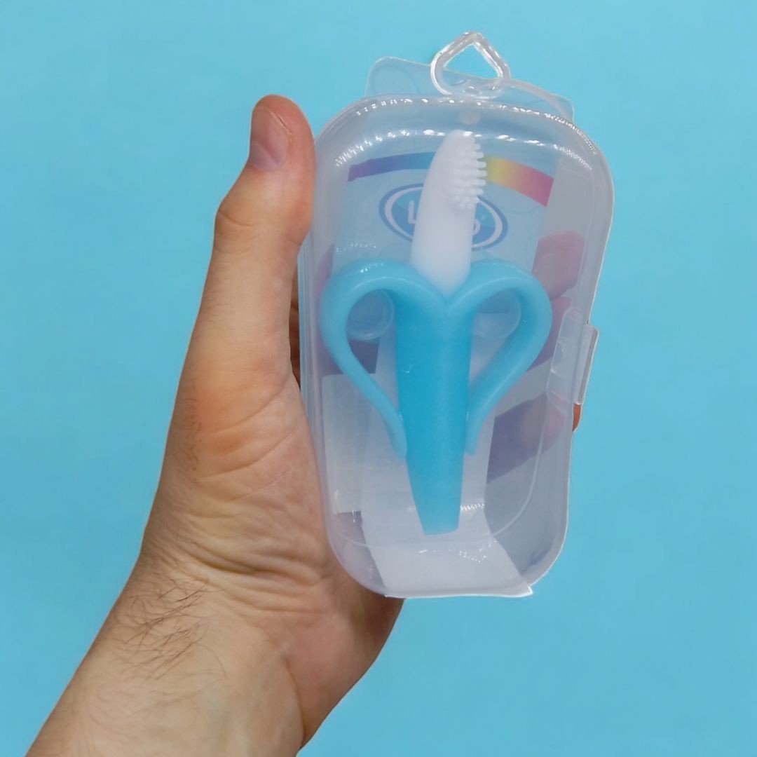 Прорізувач для зубів у вигляді банана. Стилізований під зубну щітку з мʼякими силіконовими щетинками. Має зручні для дитячої долоньки ручки. Мʼяко масажує ясна малюка, полегшує дискомфорт в період прорізування зубів. Виготовлений з безпечного силікону. У прозорому футлярі.