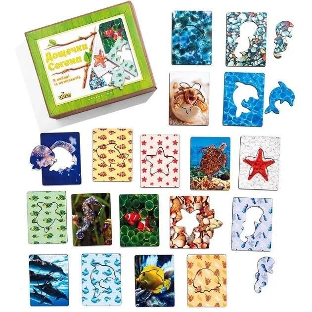Дошки Сегена - набір, в якому для кожного вкладиша потрібно підібрати будиночок-рамку. У комплекті 18 рамок та 18 вкладишів, відповідно. Відмінно розвиває дрібну моторику, памʼять, увагу, логіку.