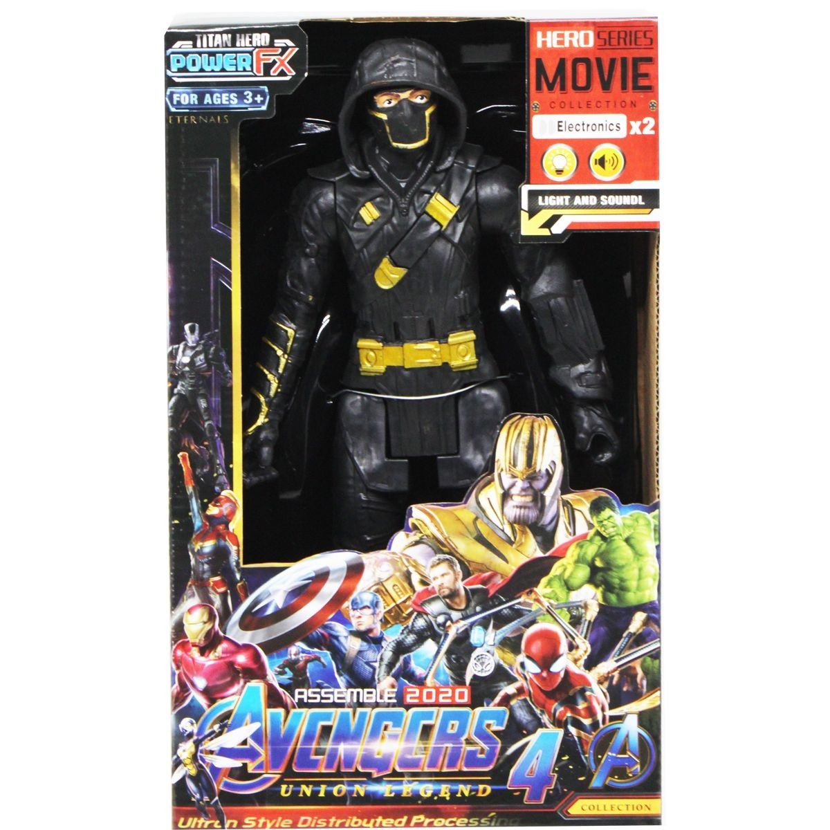 Фігурка у вигляді супергероя всесвіту "Марвел". Виконана із пластику, добре деталізована. Руки та ноги рухливі. Зі світловими і звуковими ефектами (світиться лампочка на грудях, звуки битви). Висота фігурки – 30 см. Для дітей від 3-х років.