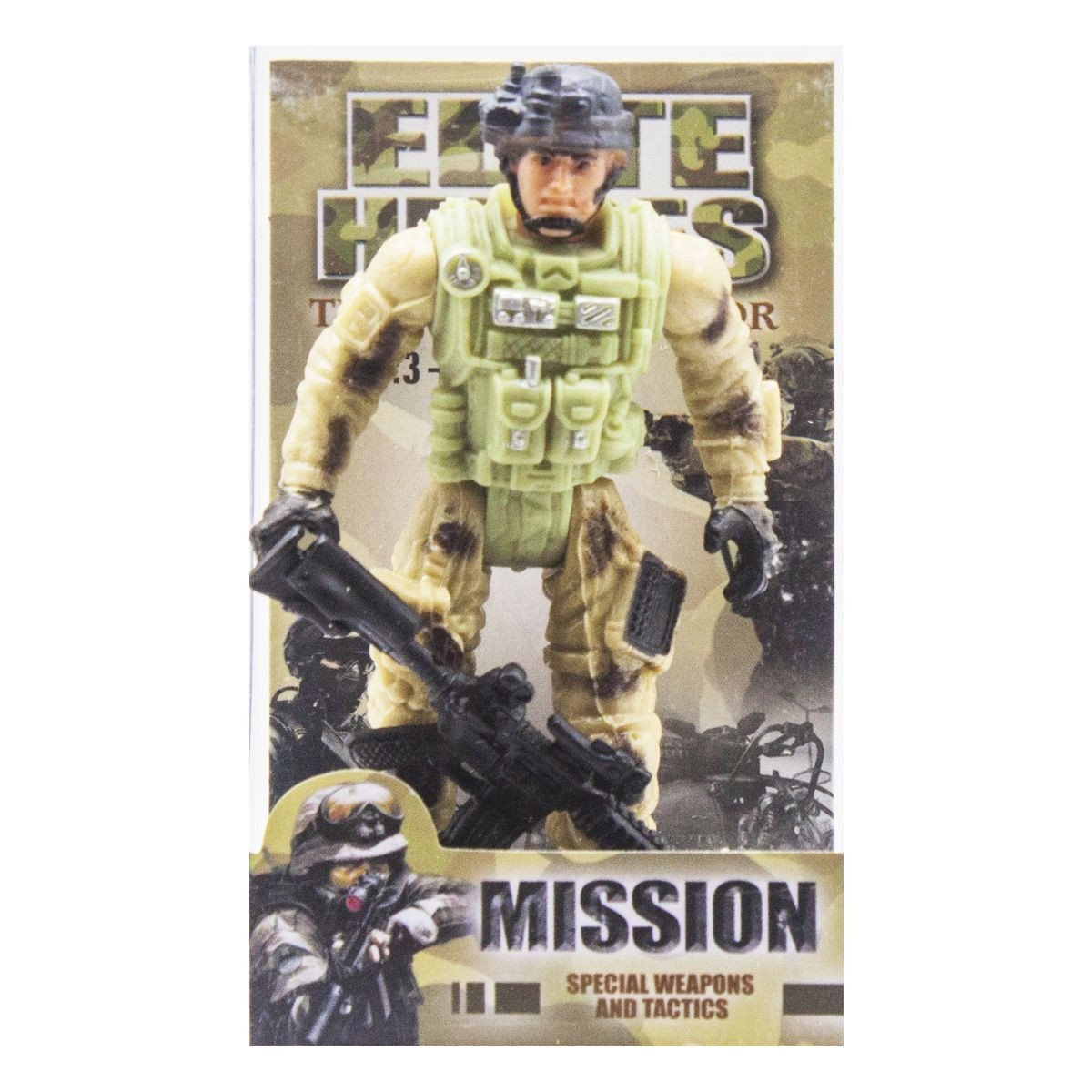 Бренд: SHANTOU Упаковка: Коробка Колір: Різнобарв'я Вага з упаковкою: 45 г Габарити в упаковці: 10.5 x 6 x 3.5 см Країна виробник: Китай Матеріал: Пластик Комплектація: Солдатик, зброя