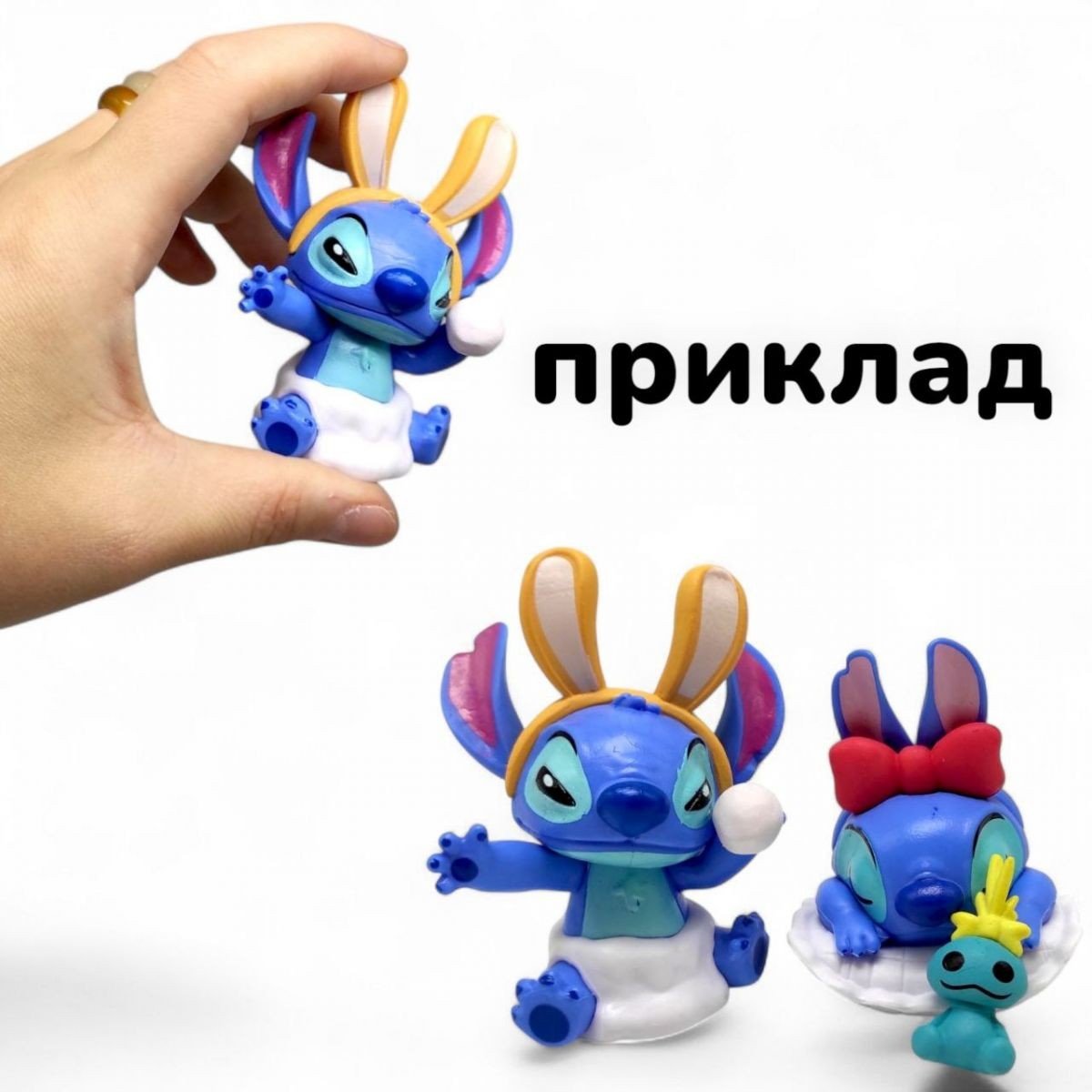 Чарівна фігурка-сюрприз у вигляді героя з улюбленого мультфільму "Ліло та Стіч". Виконана із міцної, щільної гуми та пластику, що є безпечними для дітей. Висота - близько 8 см. Ідеально підходить для колекціонування або як маленький подарунок-сюрприз.