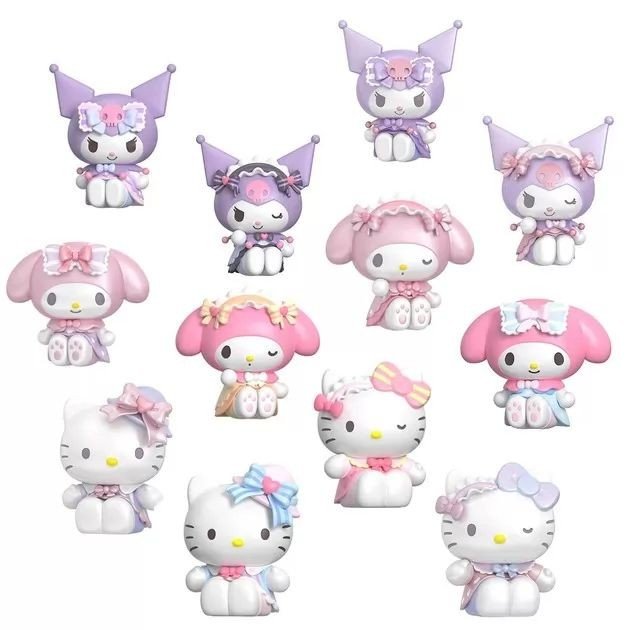 Уявіть собі країну, де кожен ранок починається з посмішки, а кожна зустріч — це маленьке диво, саме там живуть герої Sanrio, які запрошують вас у світ ніжності, дружби та яскравих пригод! Улюблені герої Hello Kitty, My Melody і Kuromi постають у новому образі — ніжних сукнях і з чарівними деталями. Відкрийте витончений світ Sanrio разом з колекцією елегантних панянок! Розмір іграшки — близько 4 см. У серії представлено 18 унікальних фігурок із різними образами: Hello Kitty, My Melody, Kuromi. Збирайте, обмінюйтесь, створюйте власні історії — і нехай кожна фігурка стане початком нової казки!