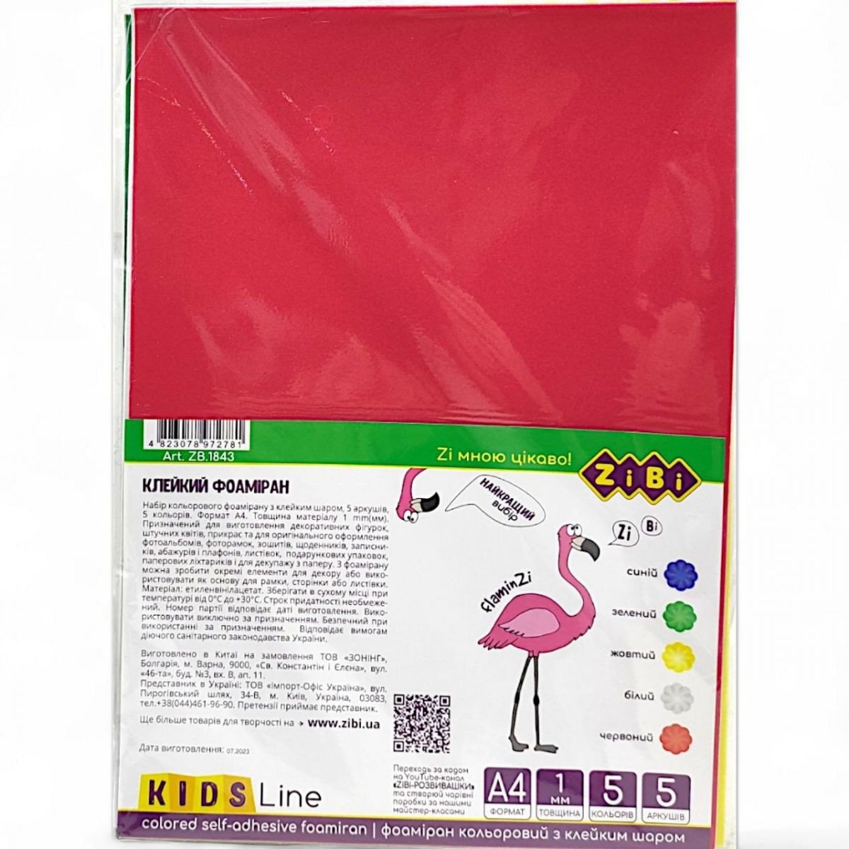 Фоаміран кольоровий з клейким шаром, А4, (5 аркушів / 5 кольорів товщиною 1 мм), KIDS Line