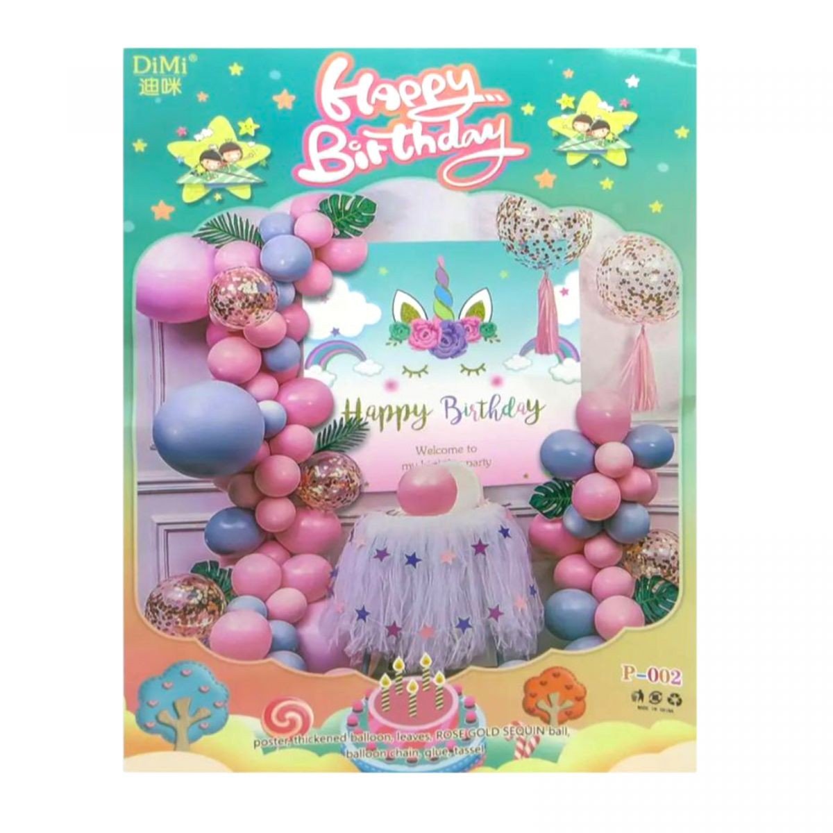 Фотозона з повітряних куль Happy Birthday- Єдиноріг постер-набір латекс.куль, кульки з блиском, пенз
