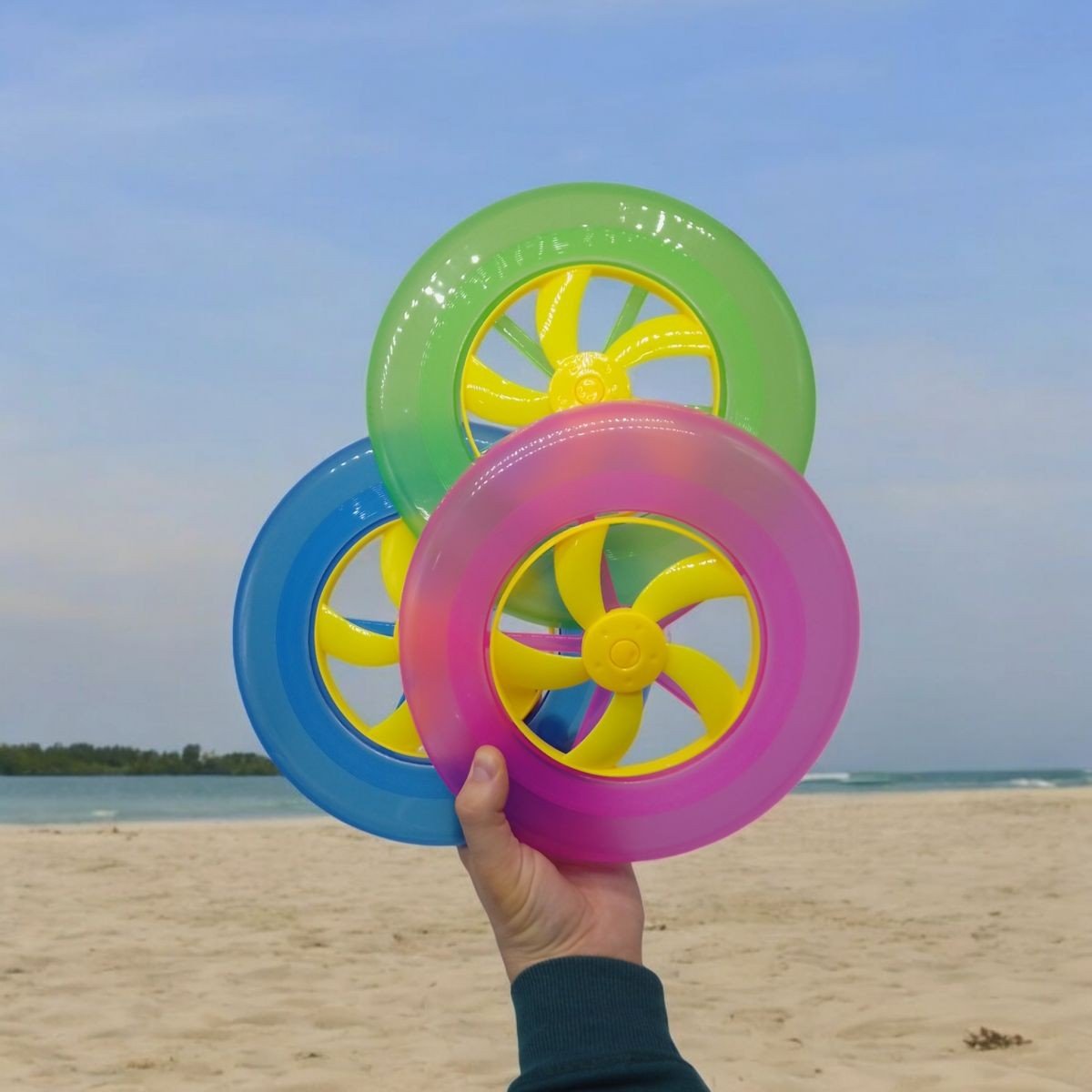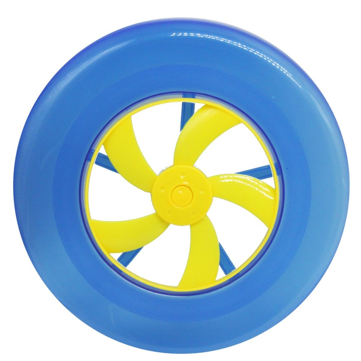 Велика літаюча тарілка (фризбі ) із міцного пластику. Тарілка зроблена таким чином, що при польоті створюється підйомна сила, яка дозволяє кидати їх на значні відстані та з великою точністю. Також до фризбі прикріплений яскравий пропелер, що обертається під час польоту. Діаметр: 22.5 см.