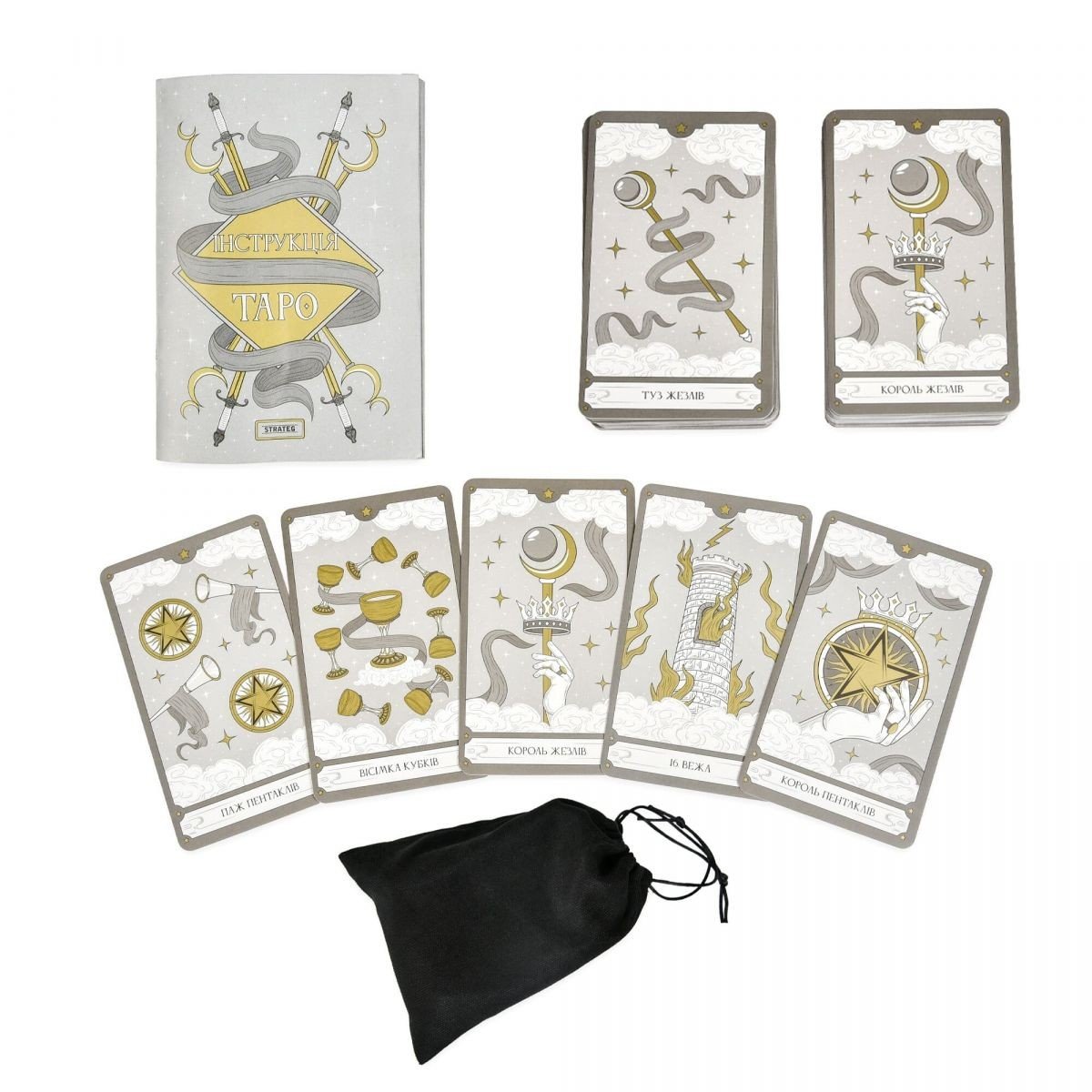 - 78 карт: складаються з 22 старших арканів і 56 молодших арканів, кожна карта має своє символічне значення.