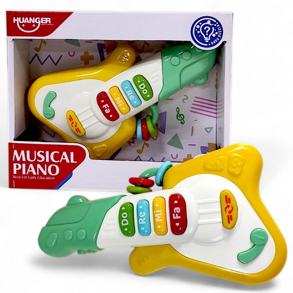 Бренд: HUANGER Упаковка: Коробка Колір: Різнобарв'я Тип ел-тів живлення: Батарейки (ААА) Кількість ел-тів живлення: 3 Ел-ти живлення в комплекті: Ні Вага з упаковкою: 165 г Габарити в упаковці: 16.5 x 20 x 6 см Габарити без упаковки: 10.5 x 20 x 4 см Країна виробник: Китай Матеріал: Пластик Комплектація: Гітара