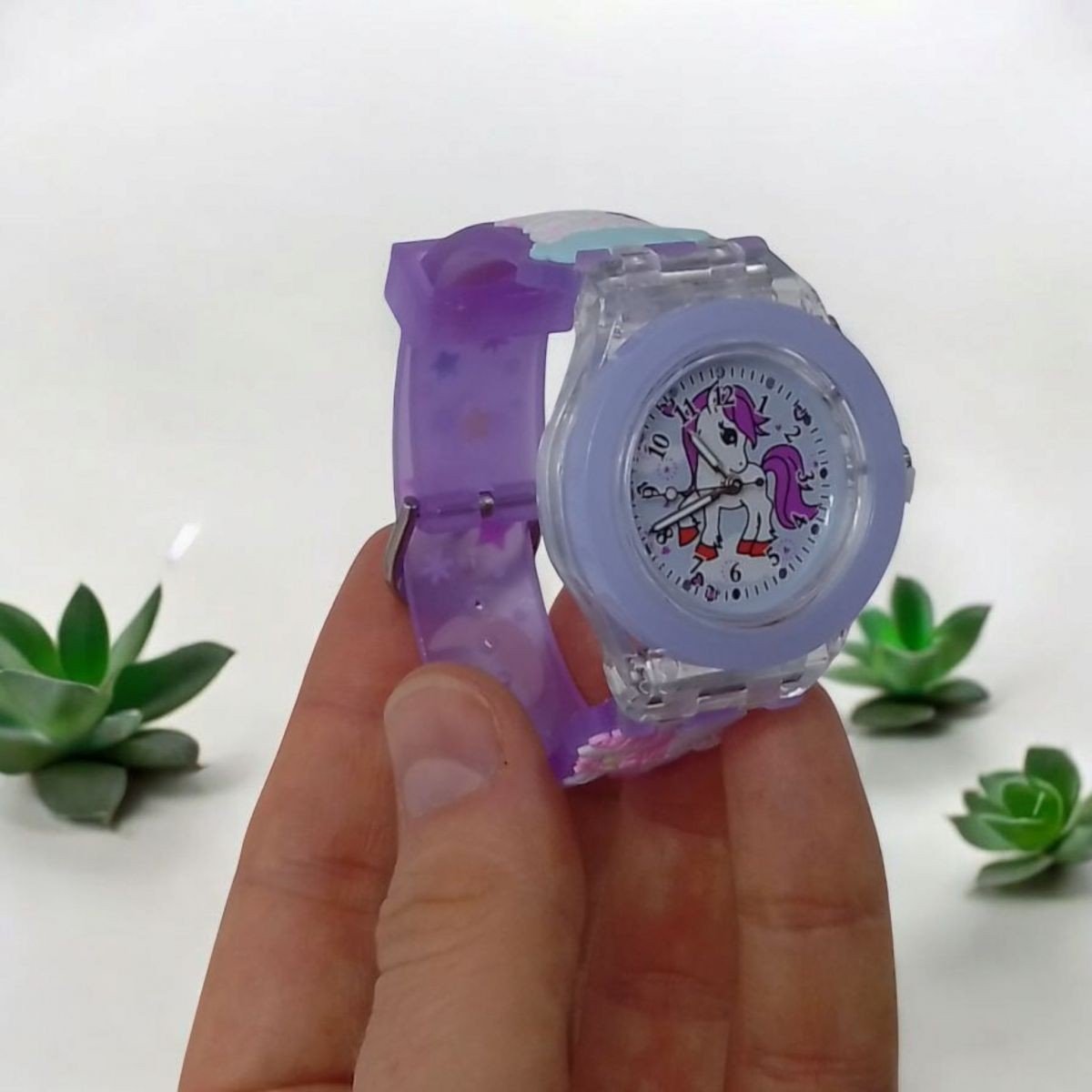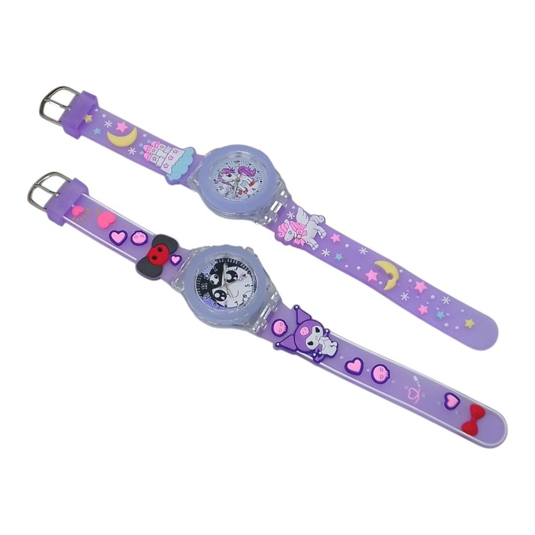 Цей дитячий годинник - це елегантний аналоговий годинник. Годинник має зручний силіконовий ремінець з яскравим дизайном. Натиснувши кнопку на самому годиннику, можна активувати два різних типи підсвічування у кольорах веселки. Продукт доступний у 2 колірних варіантах.