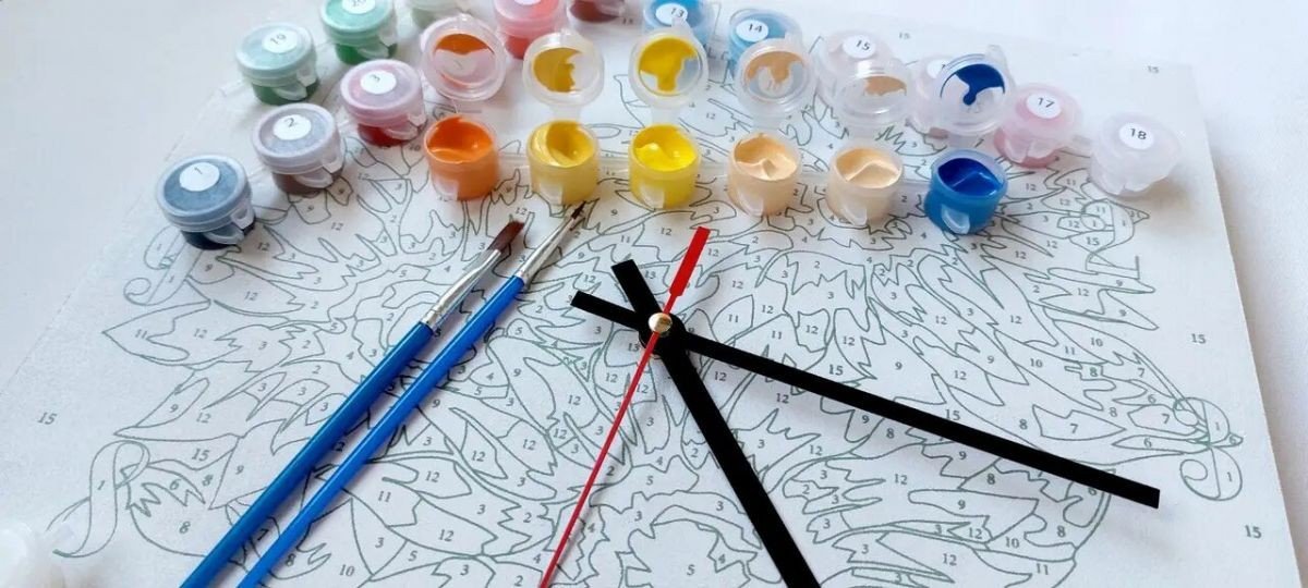 За допомогою даного набору можна розфарбовувати не просто картину, а справжній годинник. Подібний виріб стане чудовим подарунком або доповненням інтерʼєру. Для того, щоб намалювати картину, необхідно малювати за пронумерованими контурами, які відповідають кольору фарби. У наборі: годинниковий механізм зі стрілками, ДВП на широкому підрамнику (2,5 см.), паперова дублікат з контурним малюнком картини (на картині нанесена схема контурів зображення з нумерацією), нейлонові художні пензлі, палітра акрилових фарб у контейнерах та зручне кріплення. Усі необхідні фарби вже в комплекті та не потребують змішування. Розмір: 30х30 см.