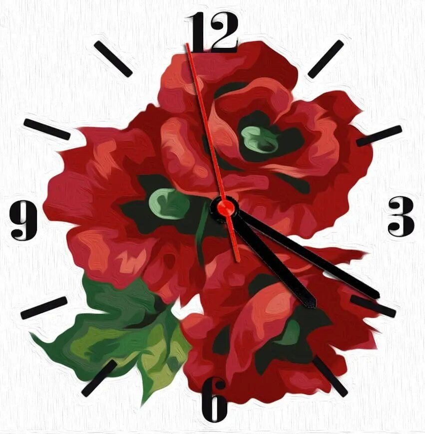 Опис Годинник-картина за номерами "Маки", 30х30 см