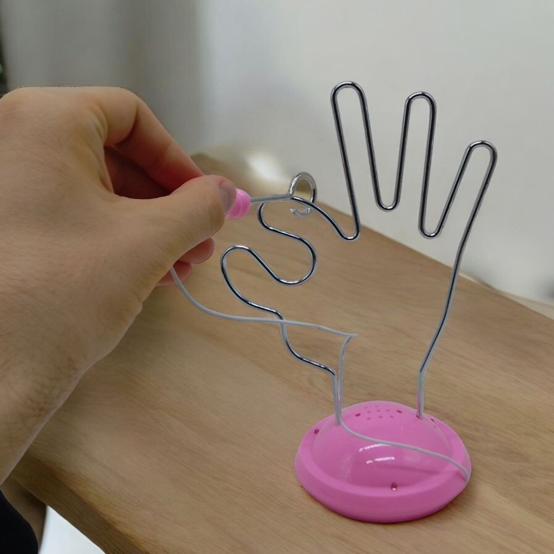 Головоломка "Maze Game Challenger". Завдання головоломки проста - вам потрібно провести гачок уздовж всього лабіринту-руки, не торкаючись металевої частини. Якщо під час гри ви доторкнетеся стеком до металевої частини, почуєте звуковий сигнал, що означає що все потрібно починати заново.
