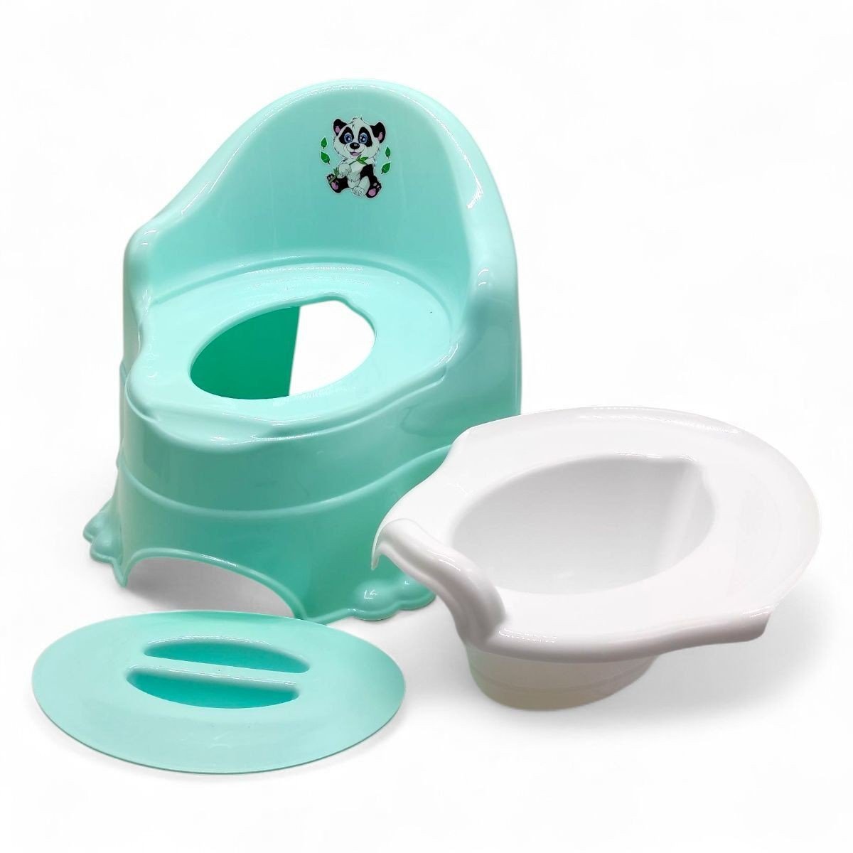 Горщик дитячий, пластиковий. В стілець-горщик вставляється малий горщик, з кришечкою. Внутрішні розміри горщика: 20 х 13 см.