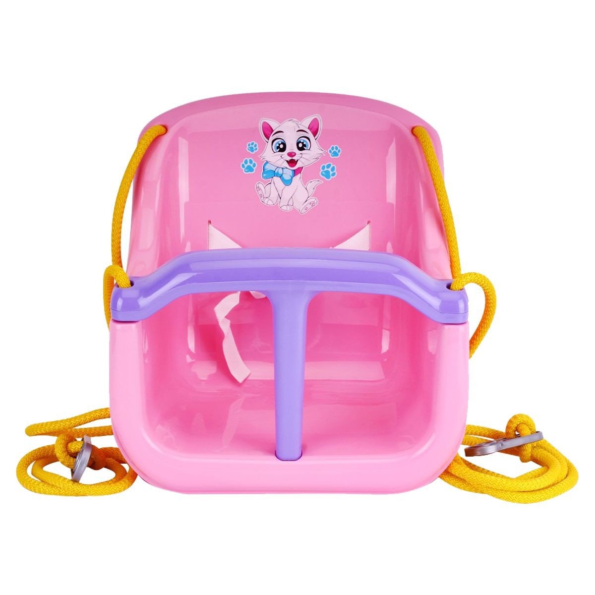 Підвісна гойдалка порадує малюка. Виконана у формі зручного сидіння з ременями безпеки. Мотузка міцна та надійна. Кронштейни виготовлені з якісного пластику. Розмір – 33х30х33 см. Максимальне навантаження – 20 кг.