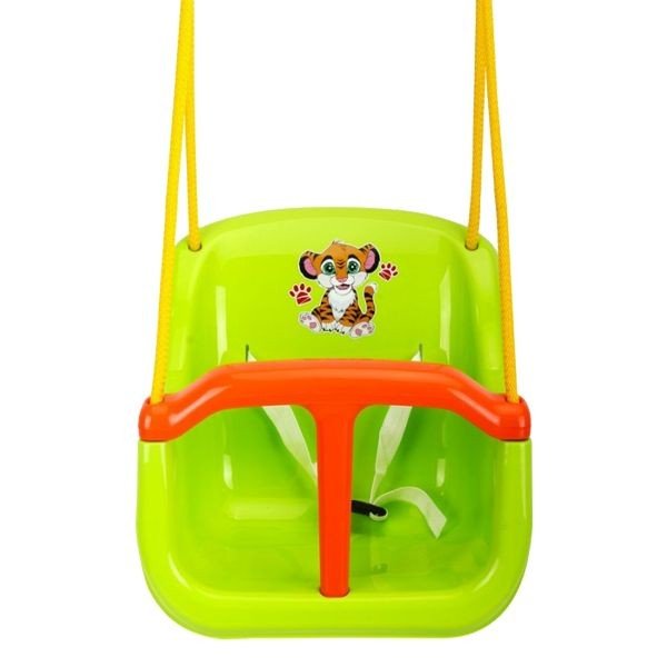 Підвісна гойдалка порадує малюка. Виконана у формі зручного сидіння з ременями безпеки. Мотузка міцна та надійна. Кронштейни виготовлені з якісного пластику. Розмір – 31х33х34 см, довжина мотузки 86 см. Максимальне навантаження – 20 кг.