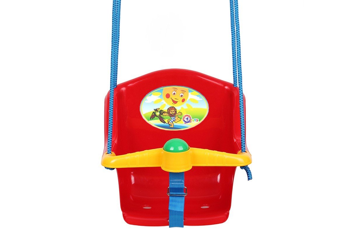 Яскрава підвісна дитяча гойдалка. Її можна устаналівать як в приміщенні, так і на вулиці. Має м'який ремінець, який допомагає надійно зафіксувати малюка в качельці.