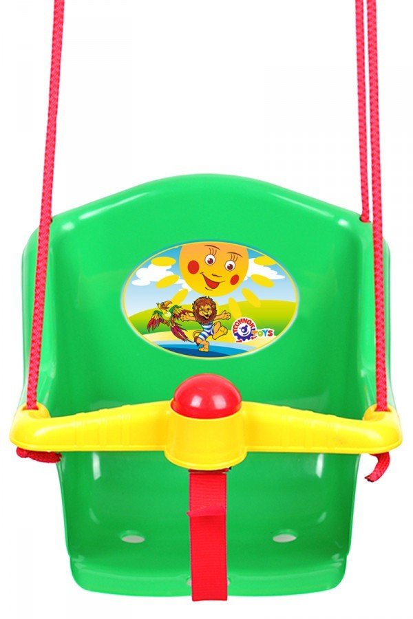 Яскрава підвісна дитяча гойдалка. Її можна устаналівать як в приміщенні, так і на вулиці. Має м'який ремінець, який допомагає надійно зафіксувати малюка в качельці.