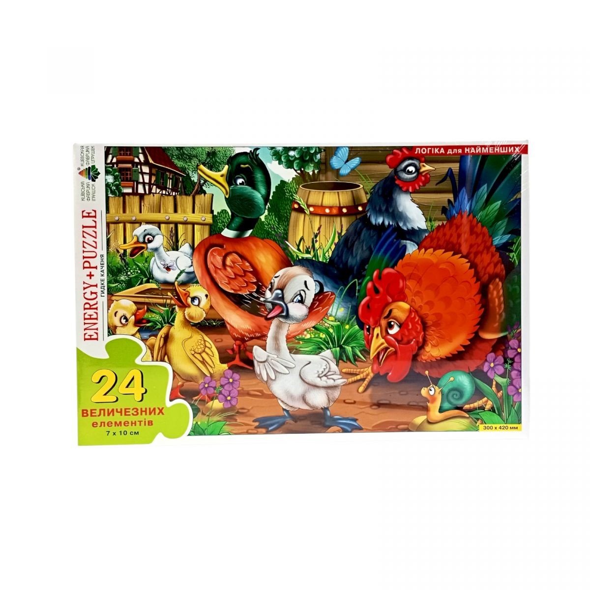 Яскраві барвисті пазли на 24 деталі (одна деталь 7х10 см.). Розмір готової картинки: 30 х 42 см. Розвивають логічне мислення, дрібну моторику рук, посидючість.
