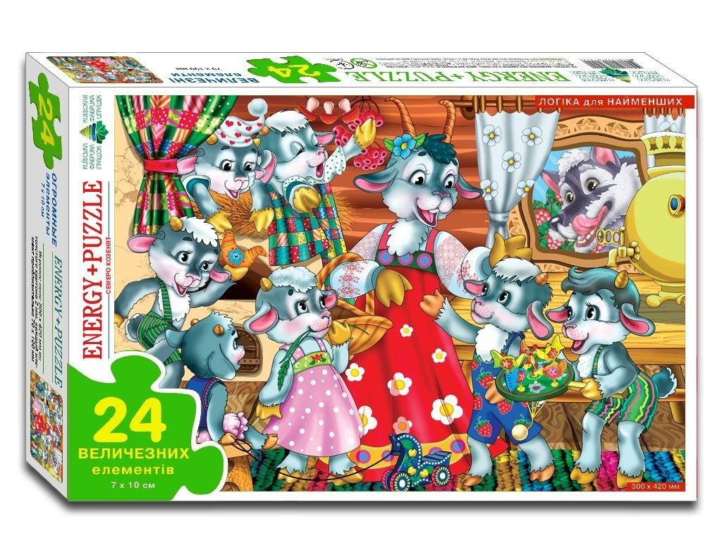 Яскраві барвисті пазли на 24 деталі (одна деталь 7х10 см.). Розмір готової картинки: 30 х 42 см. Розвивають логічне мислення, дрібну моторику рук, посидючість.