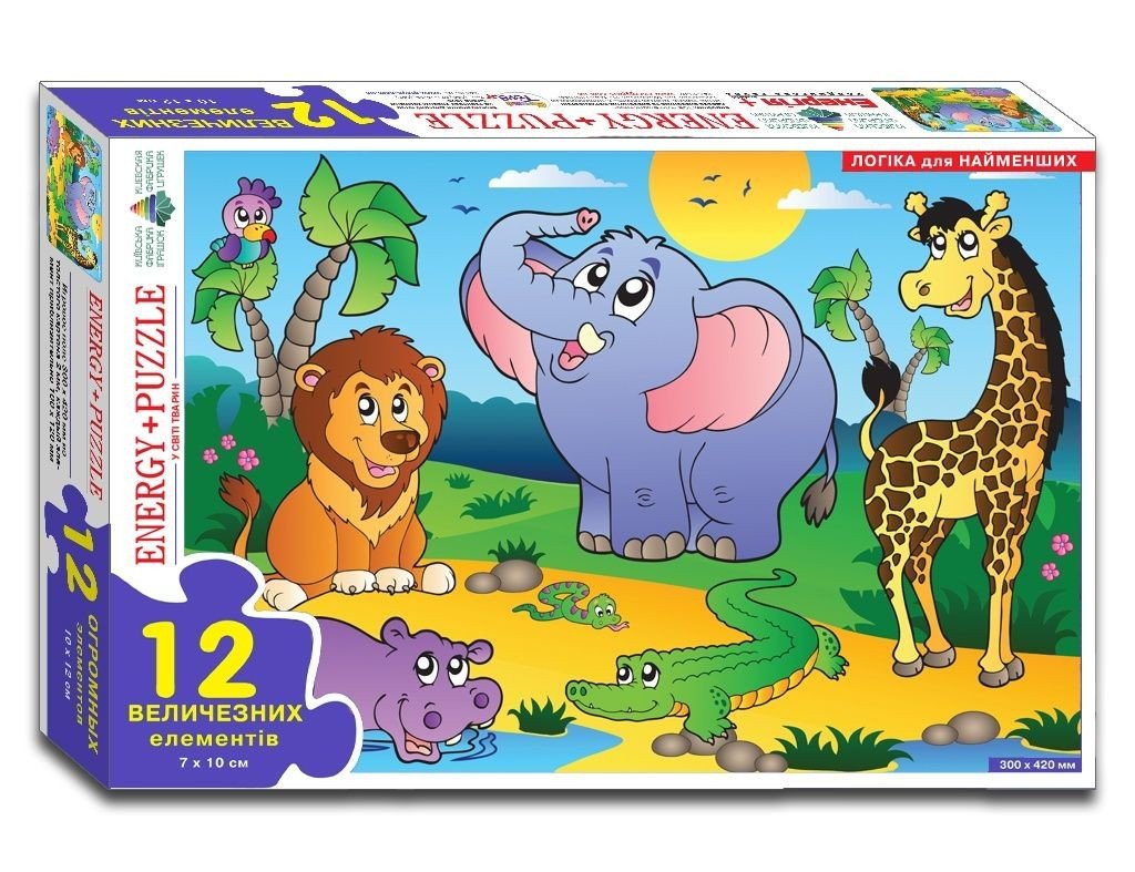 Яскраві барвисті пазли на 12 деталей (одна деталь 10х12 см.). Розмір готової картинки: 30 х 42 см. Розвивають логічне мислення, дрібну моторику рук, посидючість.